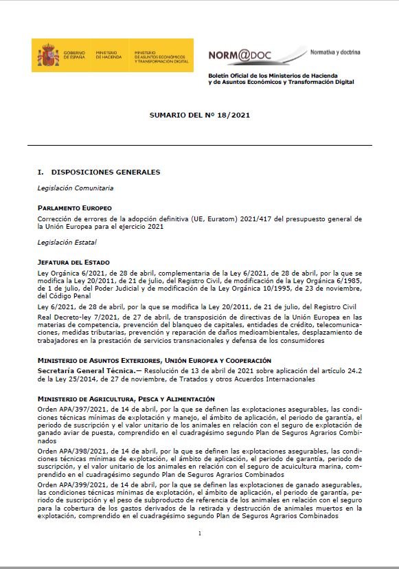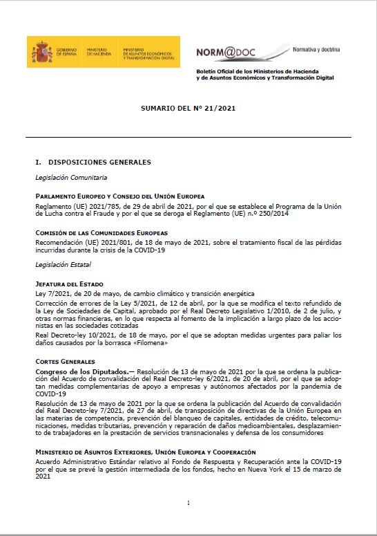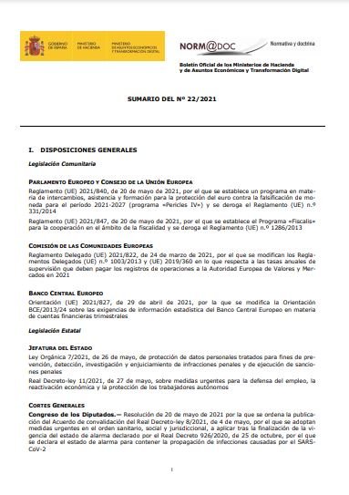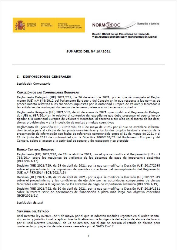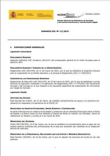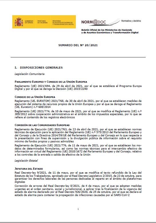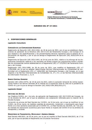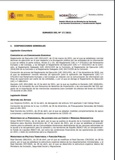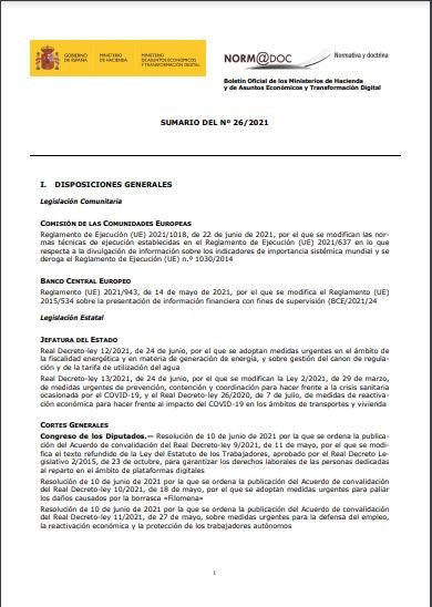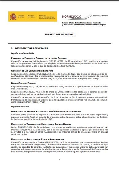 Boletín Oficial de los Ministerios de Hacienda y de Asuntos Económicos y Transformación Digital