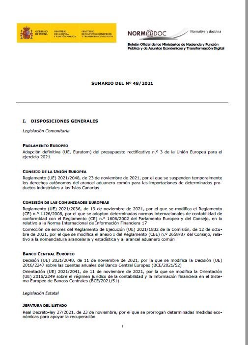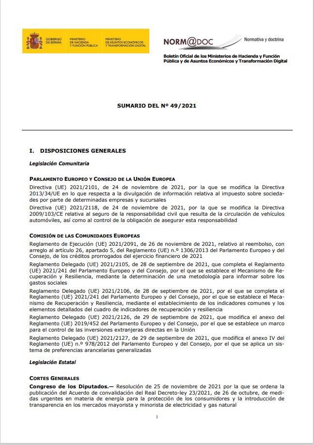 suplemento al nº 1/2021 del Boletín Oficial de los Ministerios de Hacienda y de Asuntos Económicos y Transformación Digital