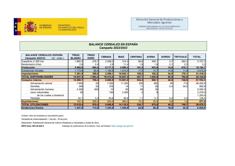Balance Cereales en España