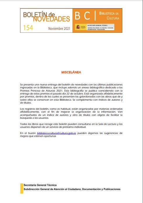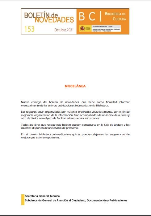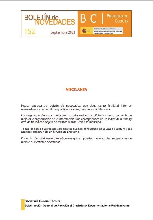 Boletín de Novedades de la Biblioteca de Cultura